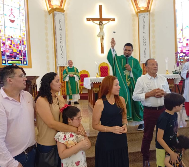 Na missa das 10h, no domingo, padre Willian, nosso pároco, agradeceu o trabalho de evangelização do vigário.